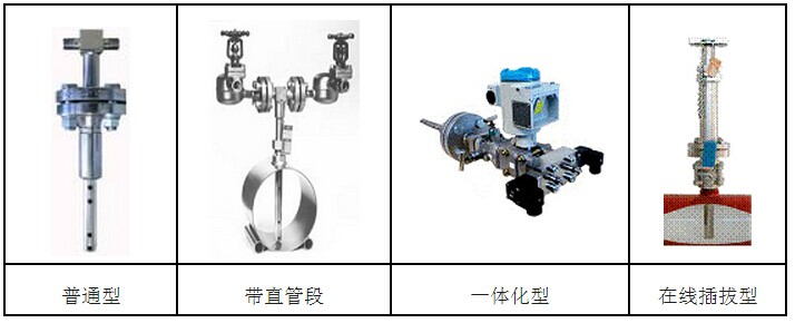 均速管德爾塔巴流量計(jì)根據(jù)測量介質(zhì)安裝方式分為四種結(jié)構(gòu),如下表: